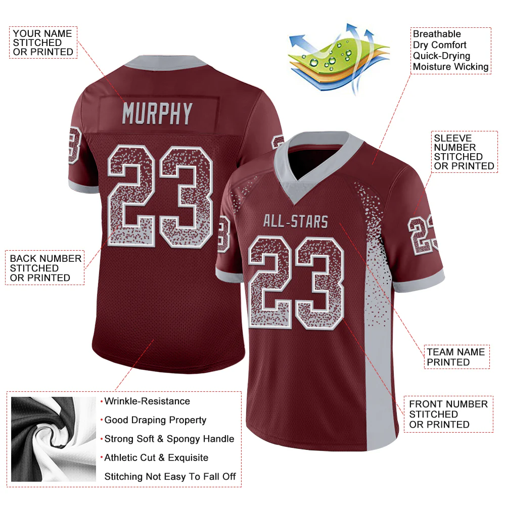 Custom Burgundy Gray-White Drift Fashion Football Jersey