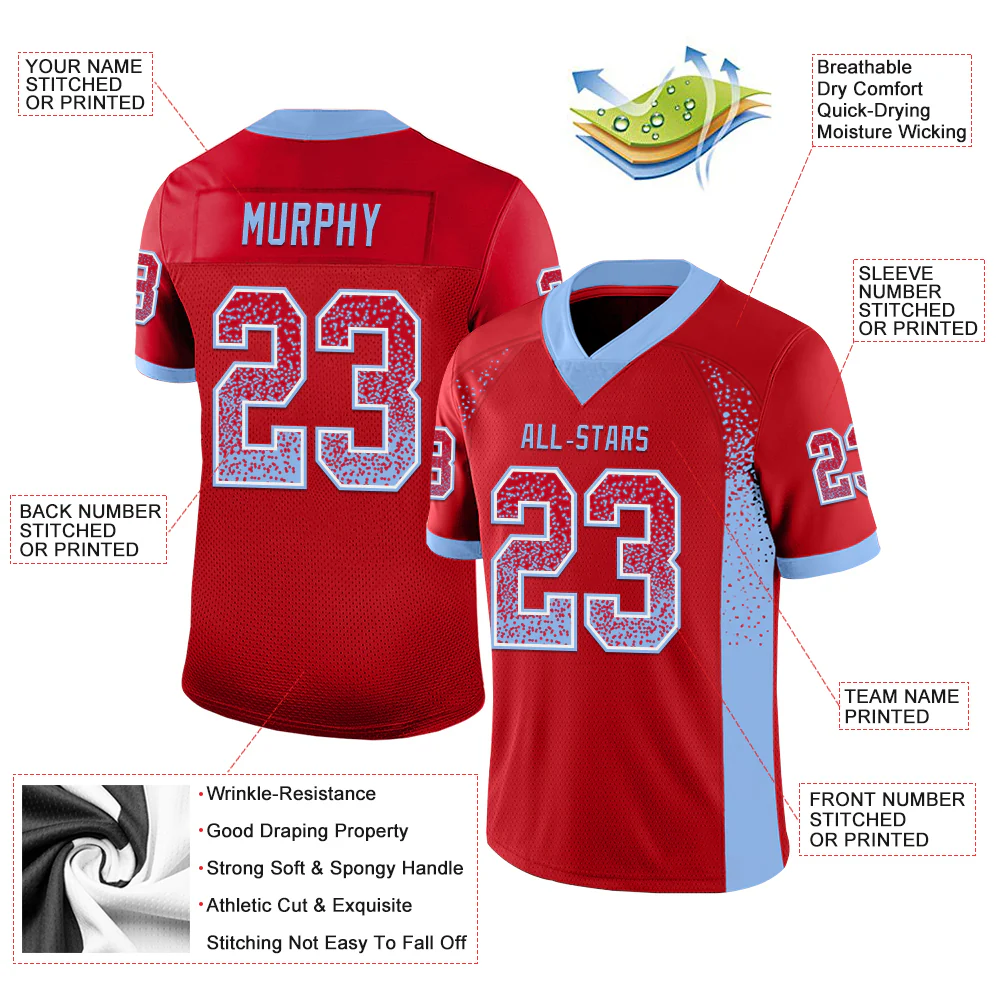 Custom Red Light Blue-White Drift Fashion Football Jersey