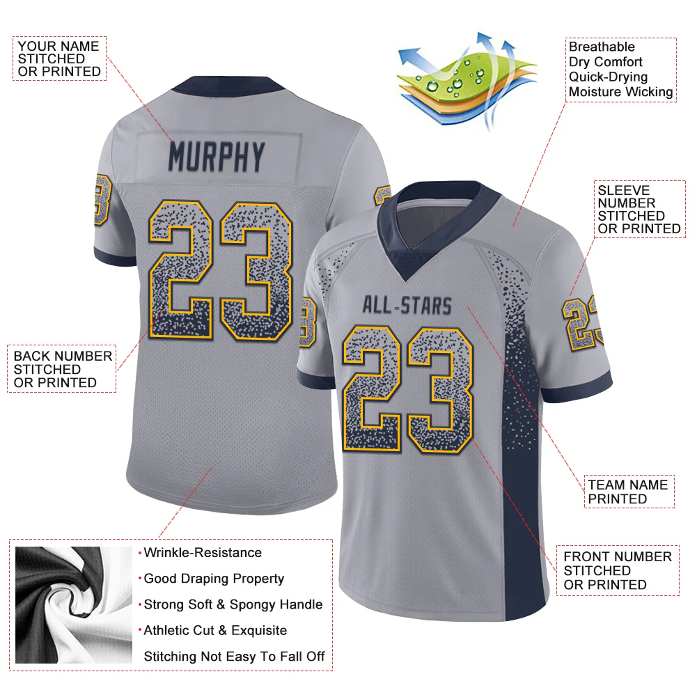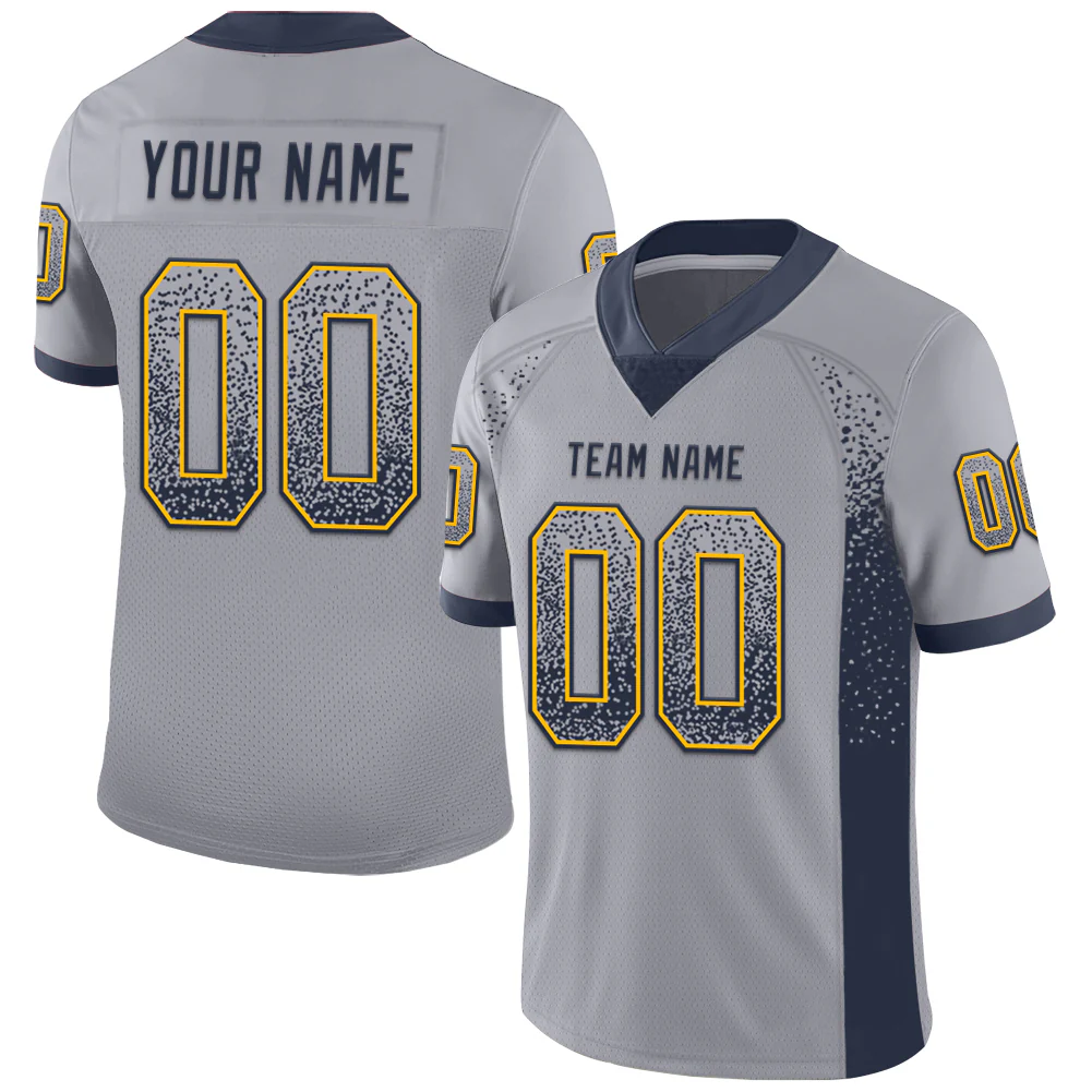 Custom Gray Navy-Gold Drift Fashion Football Jersey