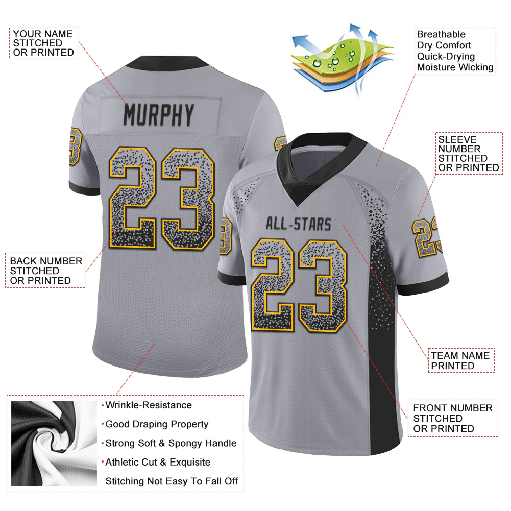 Custom Gray Black-Gold Drift Fashion Football Jersey
