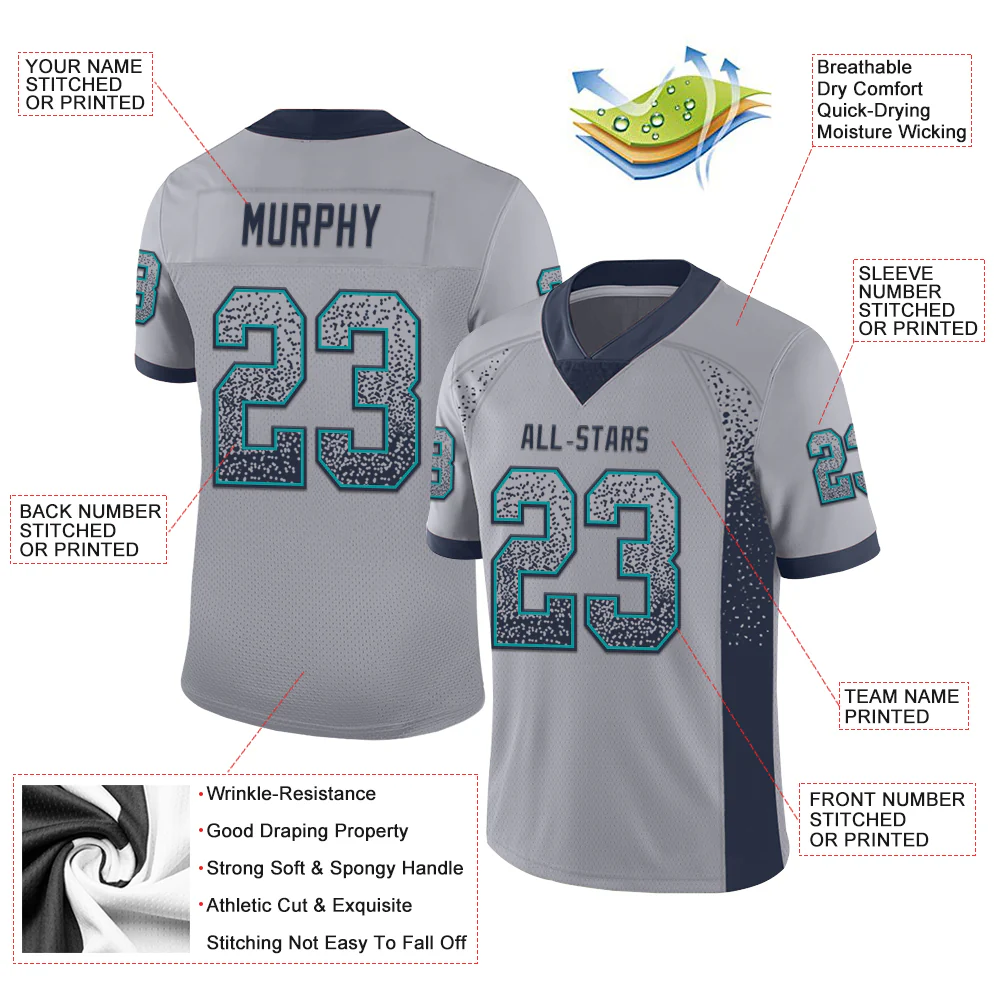 Custom Gray Navy-Teal Drift Fashion Football Jersey