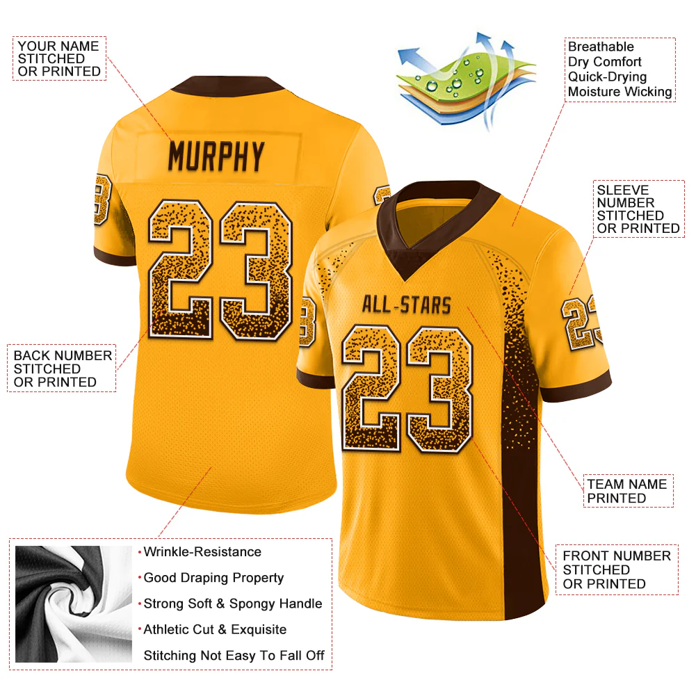 Custom Gold Brown-White Drift Fashion Football Jersey