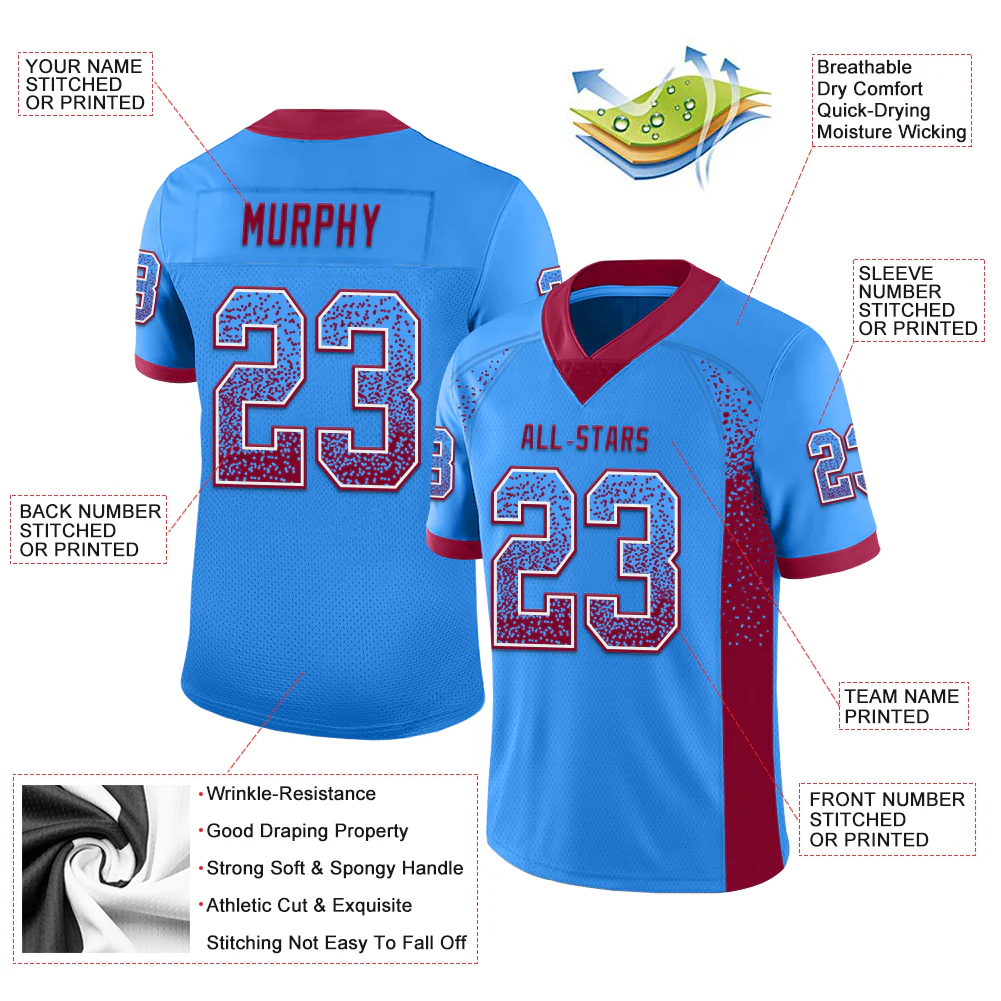 Custom Powder Blue Maroon-White Drift Fashion Football Jersey