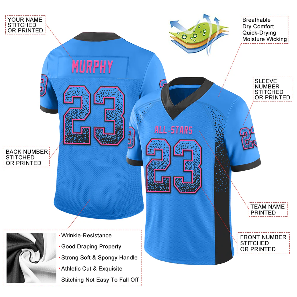 Custom Powder Blue Black-Pink Drift Fashion Football Jersey