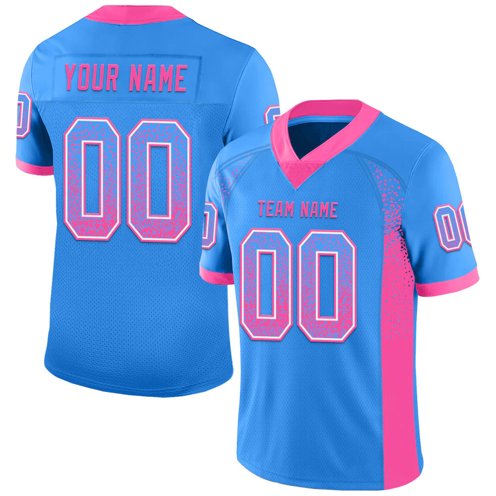 Custom Powder Blue Pink-White Drift Fashion Football Jersey