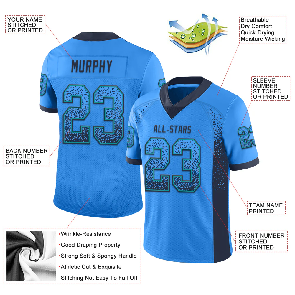 Custom Powder Blue Navy-Teal Drift Fashion Football Jersey