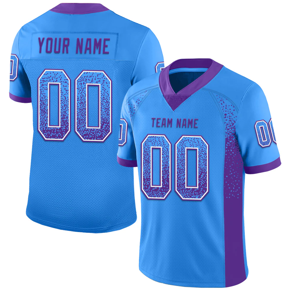 Custom Powder Blue Purple-White Drift Fashion Football Jersey