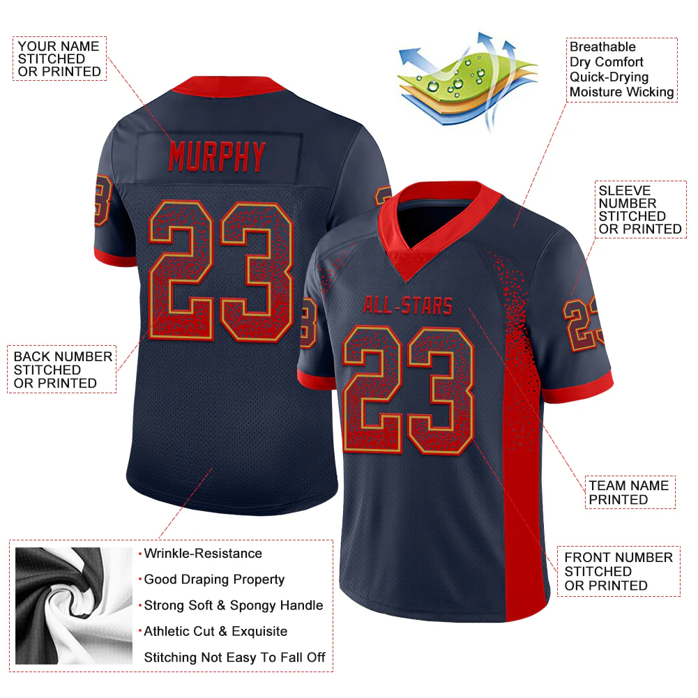 Custom Navy Red-Old Gold Drift Fashion Football Jersey