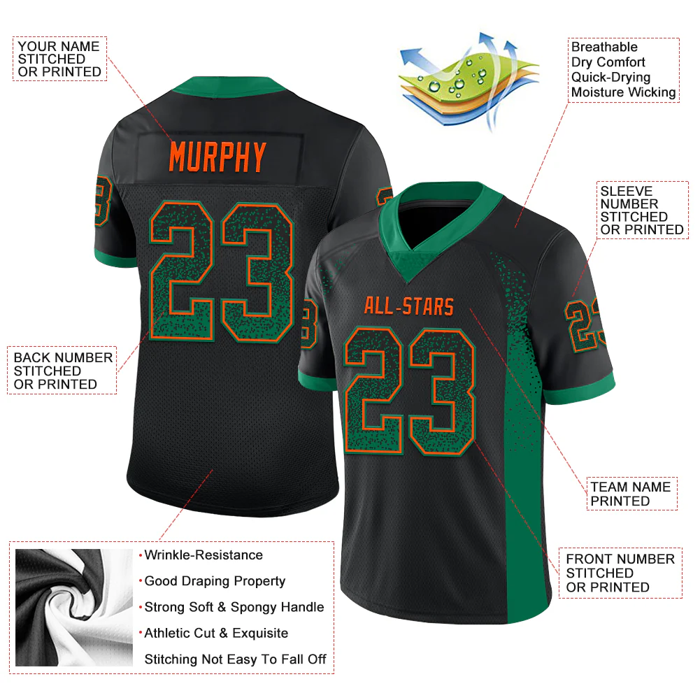 Custom Black Kelly Green-Orange Drift Fashion Football Jersey