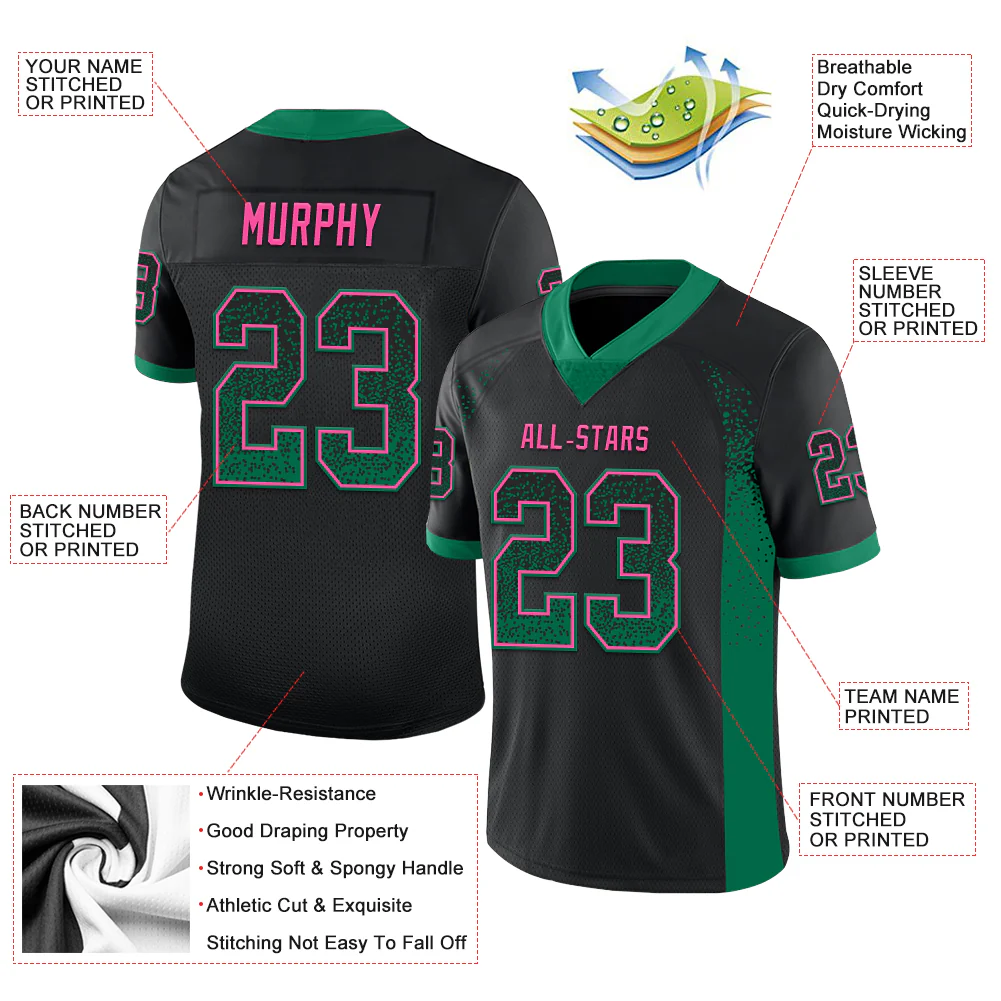 Custom Black Kelly Green-Pink Drift Fashion Football Jersey