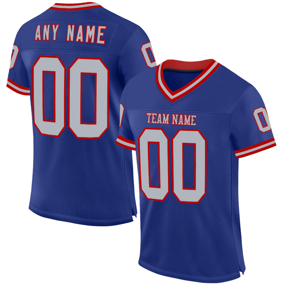 Custom Royal Gray-Red Mesh Authentic Throwback Football Jersey