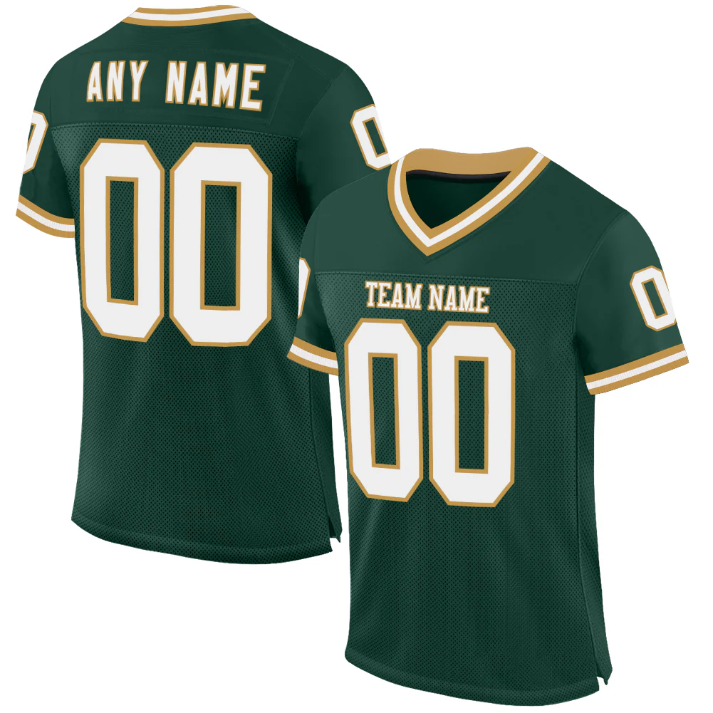Custom Green White-Old Gold Mesh Authentic Throwback Football Jersey