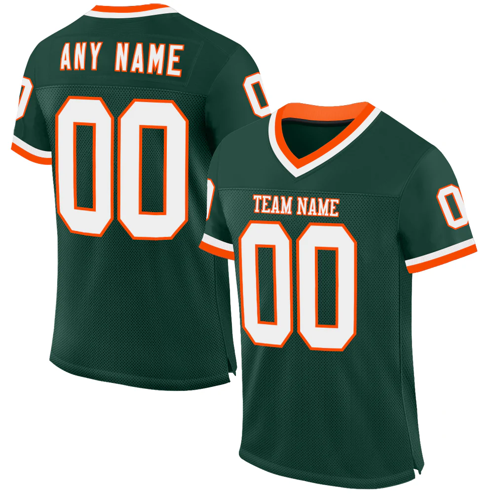 Custom Green Orange-White Mesh Authentic Throwback Football Jersey