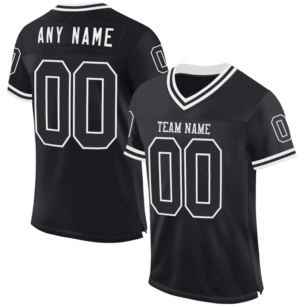 Custom Black White Mesh Authentic Throwback Football Jersey