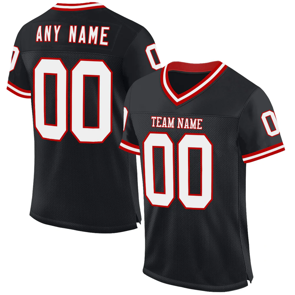 Custom Black Red-White Mesh Authentic Throwback Football Jersey