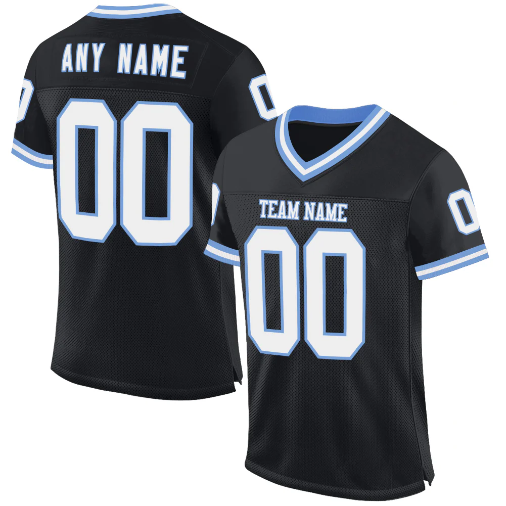 Custom Black White-Light Blue Mesh Authentic Throwback Football Jersey