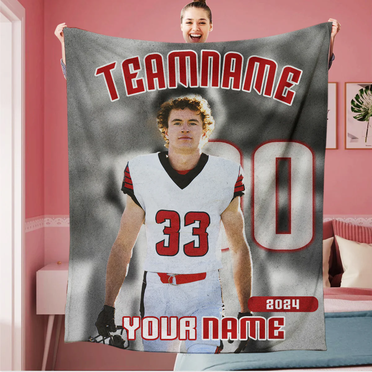 Personalized Football 2024 Team Photo Sports Blanket
