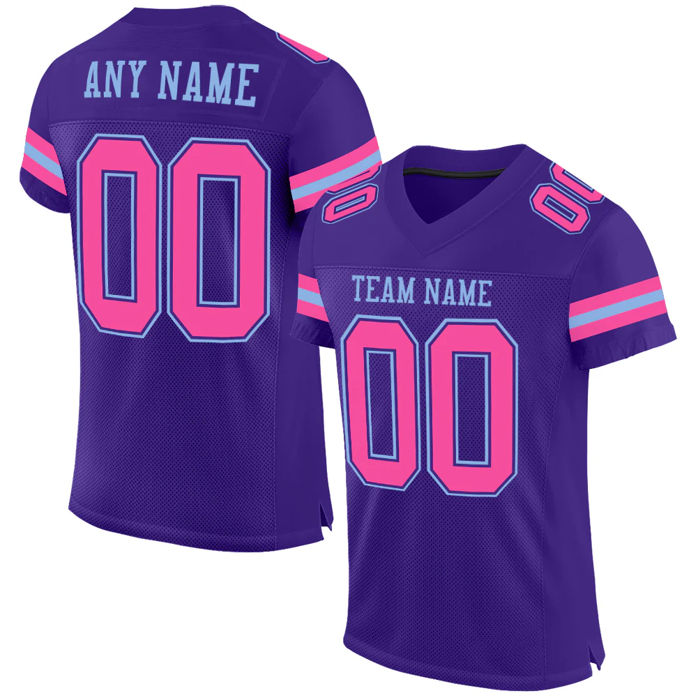 Custom Purple Pink-Light Blue Mesh Authentic Football Jersey