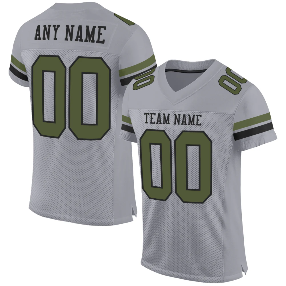 Custom Gray Olive-Black Mesh Authentic Football Jersey