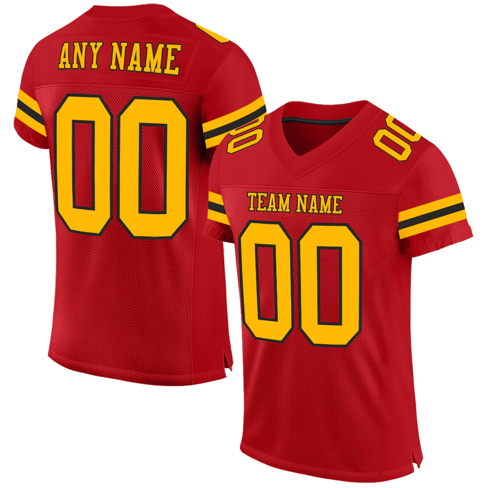 Custom Red Gold-Black Mesh Authentic Football Jersey