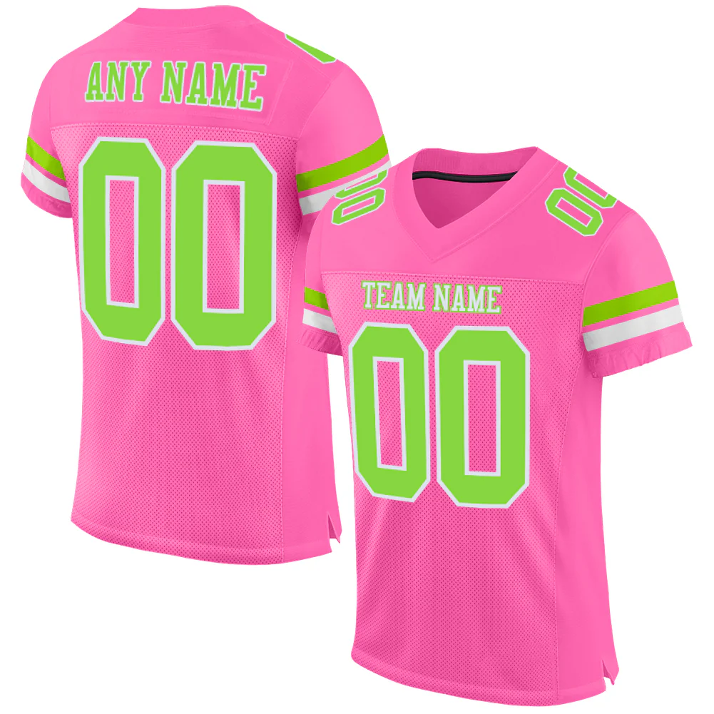 Custom Pink Neon Green-White Mesh Authentic Football Jersey