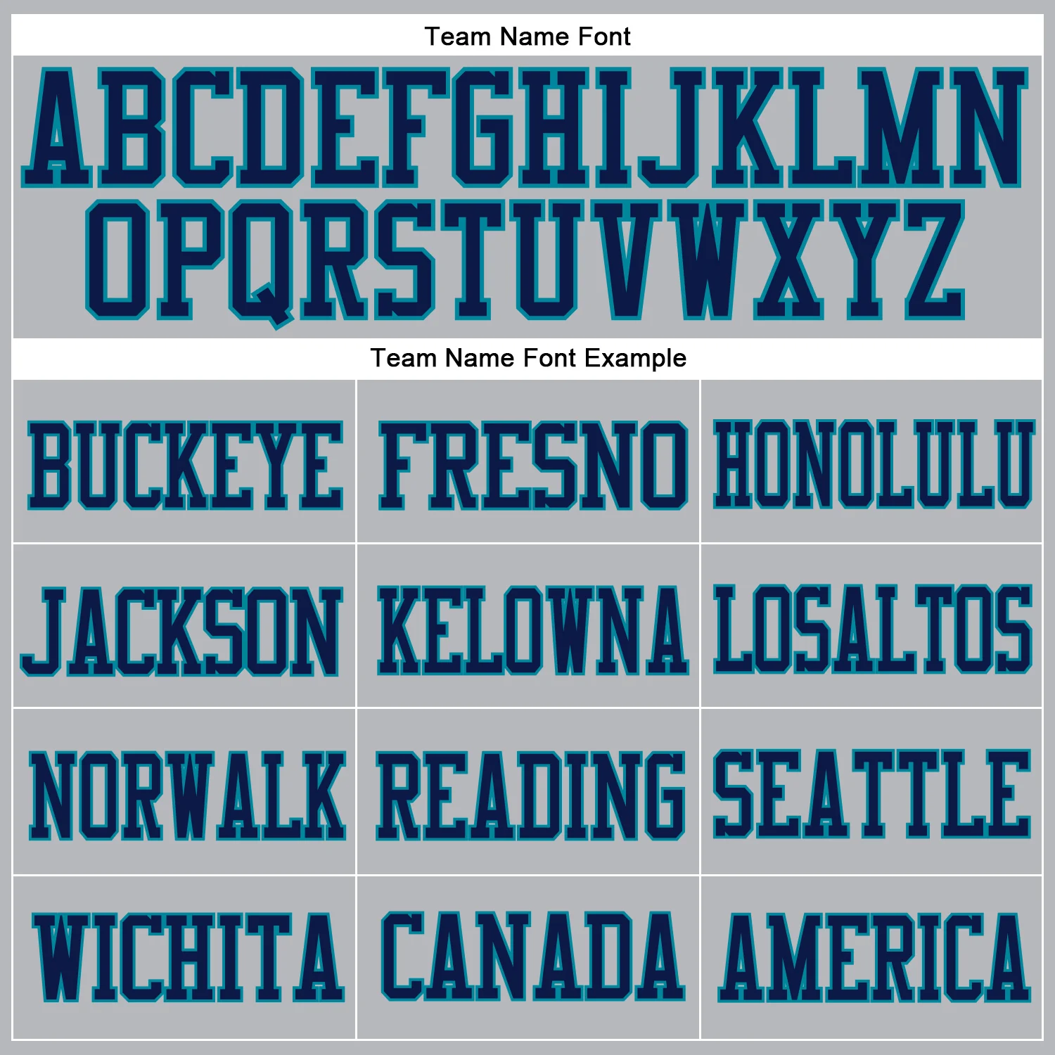 Custom Gray Navy-Teal Mesh Authentic Football Jersey