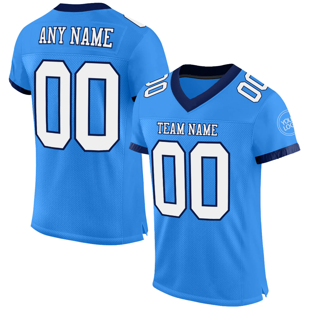 Custom Powder Blue White-Navy Mesh Authentic Football Jersey