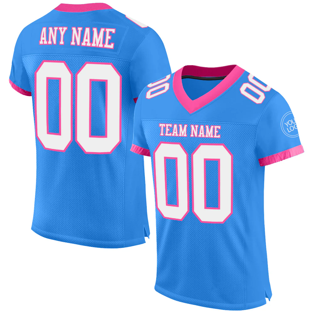 Custom Powder Blue White-Pink Mesh Authentic Football Jersey