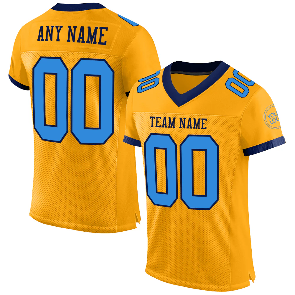 Custom Gold Powder Blue-Navy Mesh Authentic Football Jersey