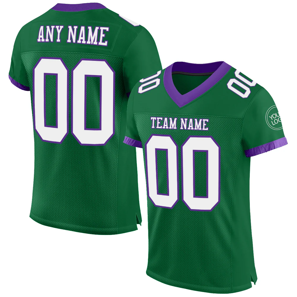 Custom Kelly Green White-Purple Mesh Authentic Football Jersey