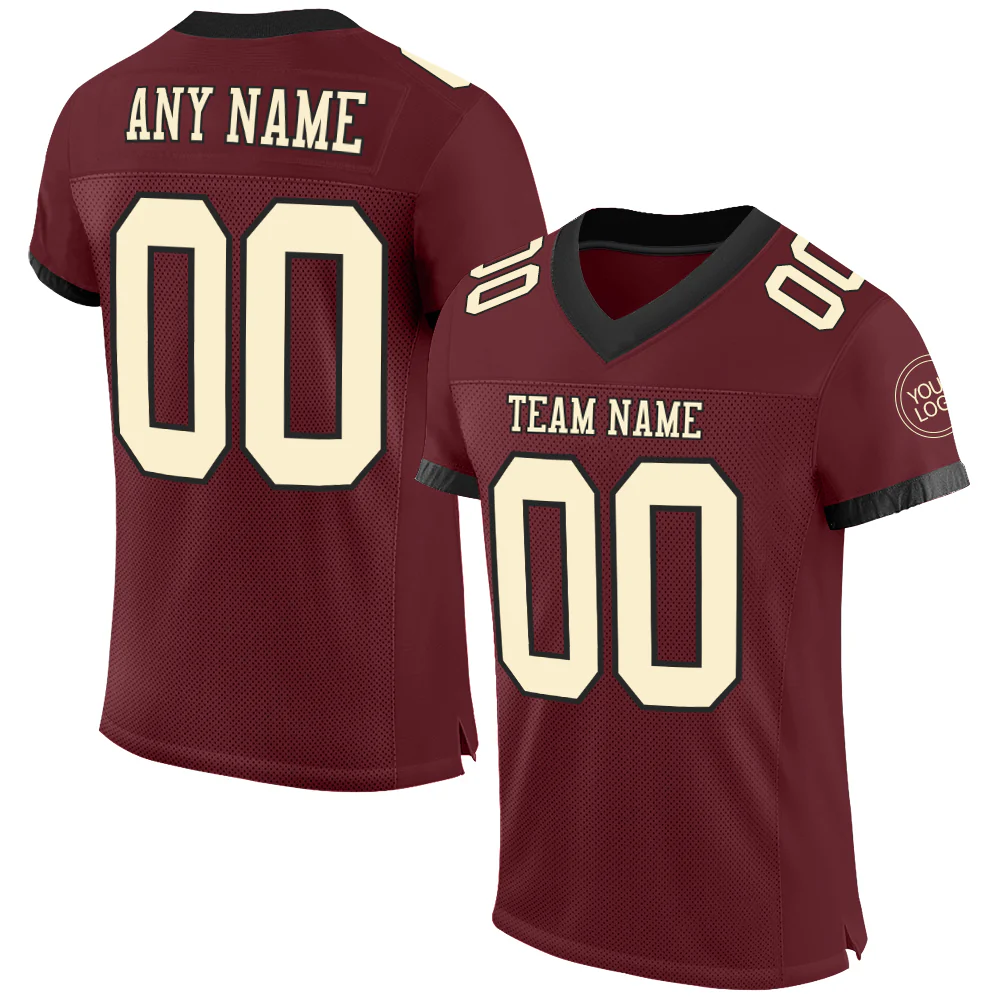 Custom Burgundy Cream-Black Mesh Authentic Football Jersey