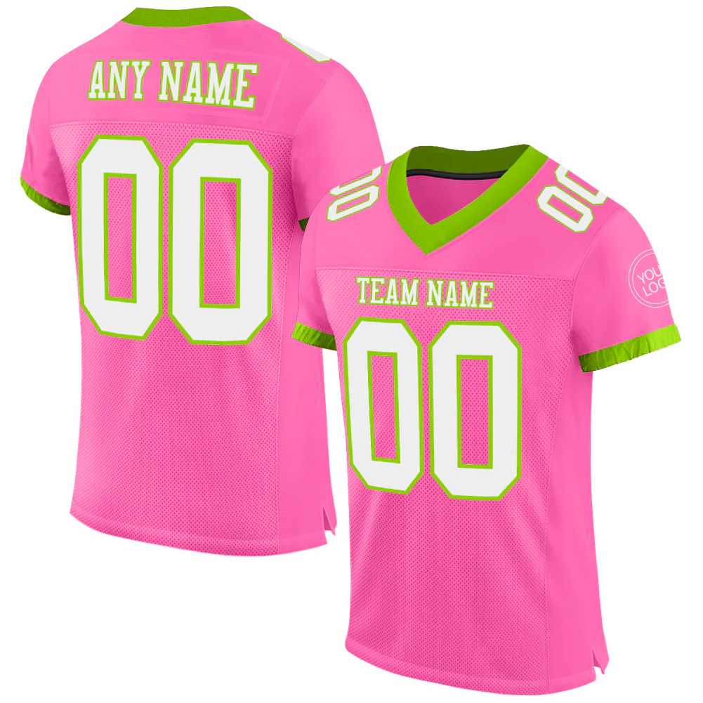 Custom Pink White-Grass Green Mesh Authentic Football Jersey