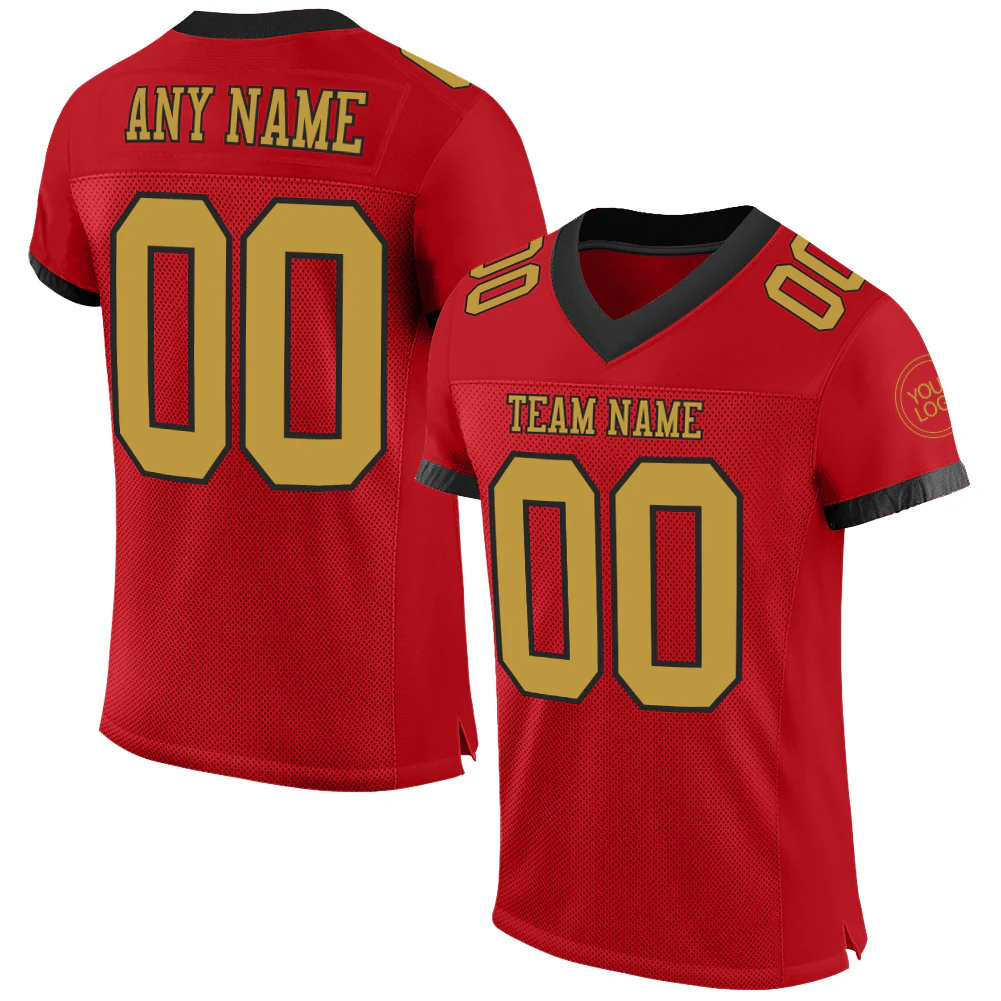 Custom Red Old Gold-Black Mesh Authentic Football Jersey