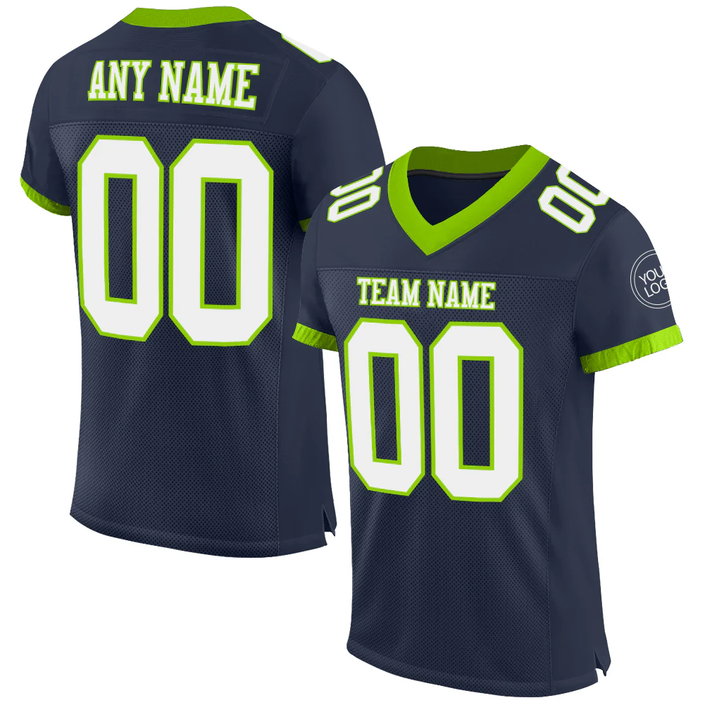 Custom Navy White-Neon Green Mesh Authentic Football Jersey
