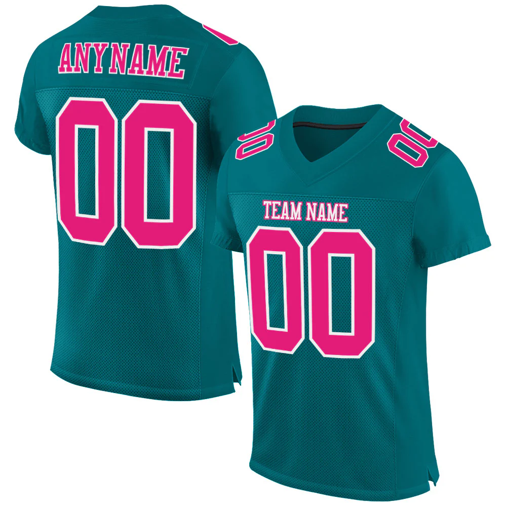 Custom Teal Hot Pink-White Mesh Authentic Football Jersey