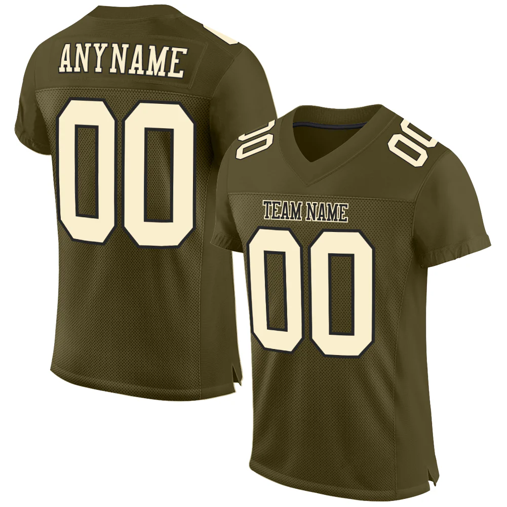 Custom Olive Cream-Black Mesh Authentic Salute To Service Football Jersey