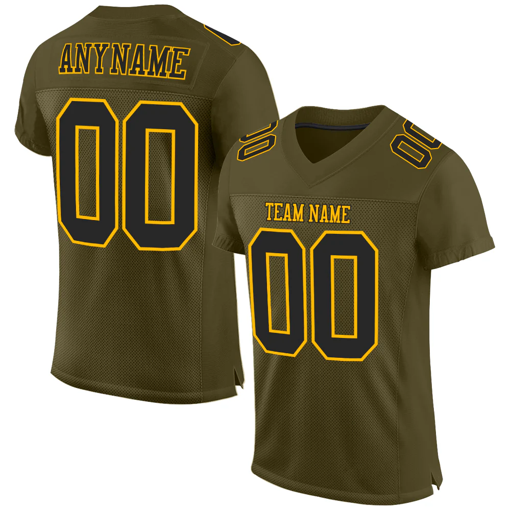 Custom Olive Black-Gold Mesh Authentic Salute To Service Football Jersey