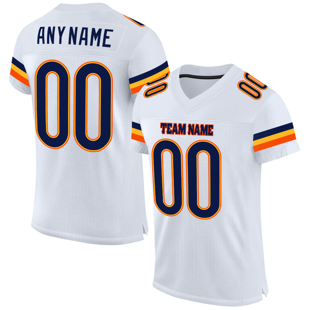 Custom White Navy-Orange Mesh Authentic Football Jersey