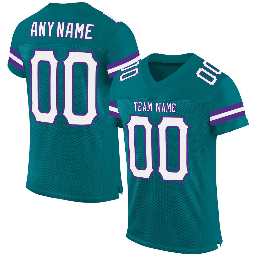 Custom Teal White-Purple Mesh Authentic Football Jersey