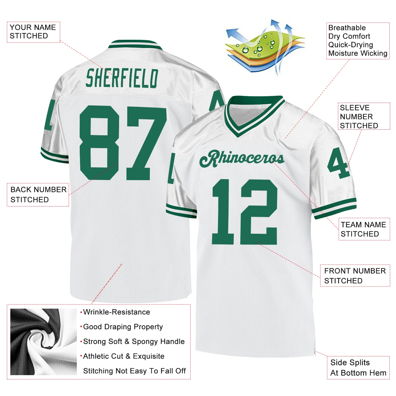 Custom White Kelly Green Mesh Authentic Throwback Football Jersey