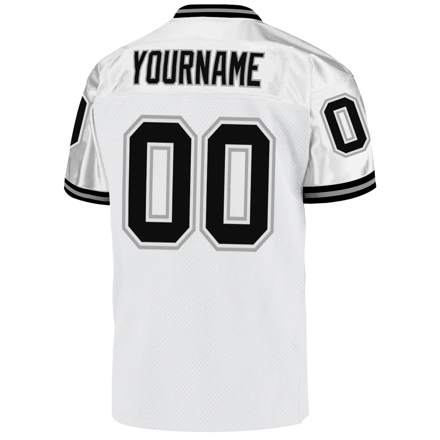 Custom White Black-Gray Mesh Authentic Throwback Football Jersey