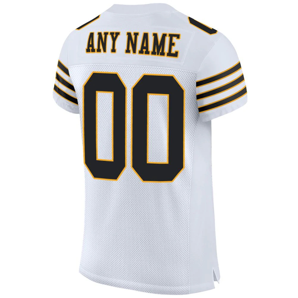 Custom White Black-Gold Mesh Authentic Football Jersey