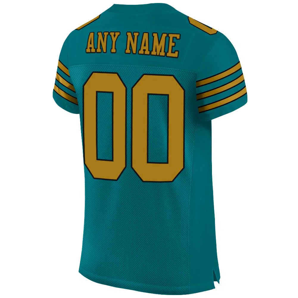 Custom Teal Old Gold-Black Mesh Authentic Football Jersey