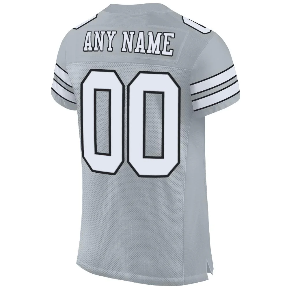Custom Silver White-Black Mesh Authentic Football Jersey