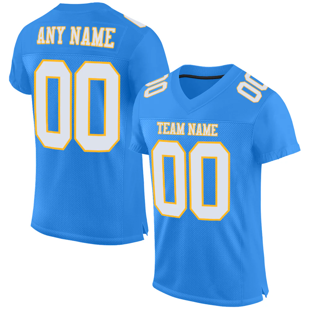 Custom Powder Blue White-Gold Mesh Authentic Football Jersey
