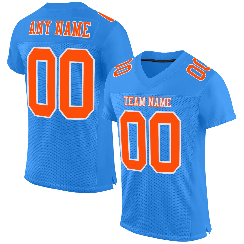 Custom Powder Blue Orange-White Mesh Authentic Football Jersey