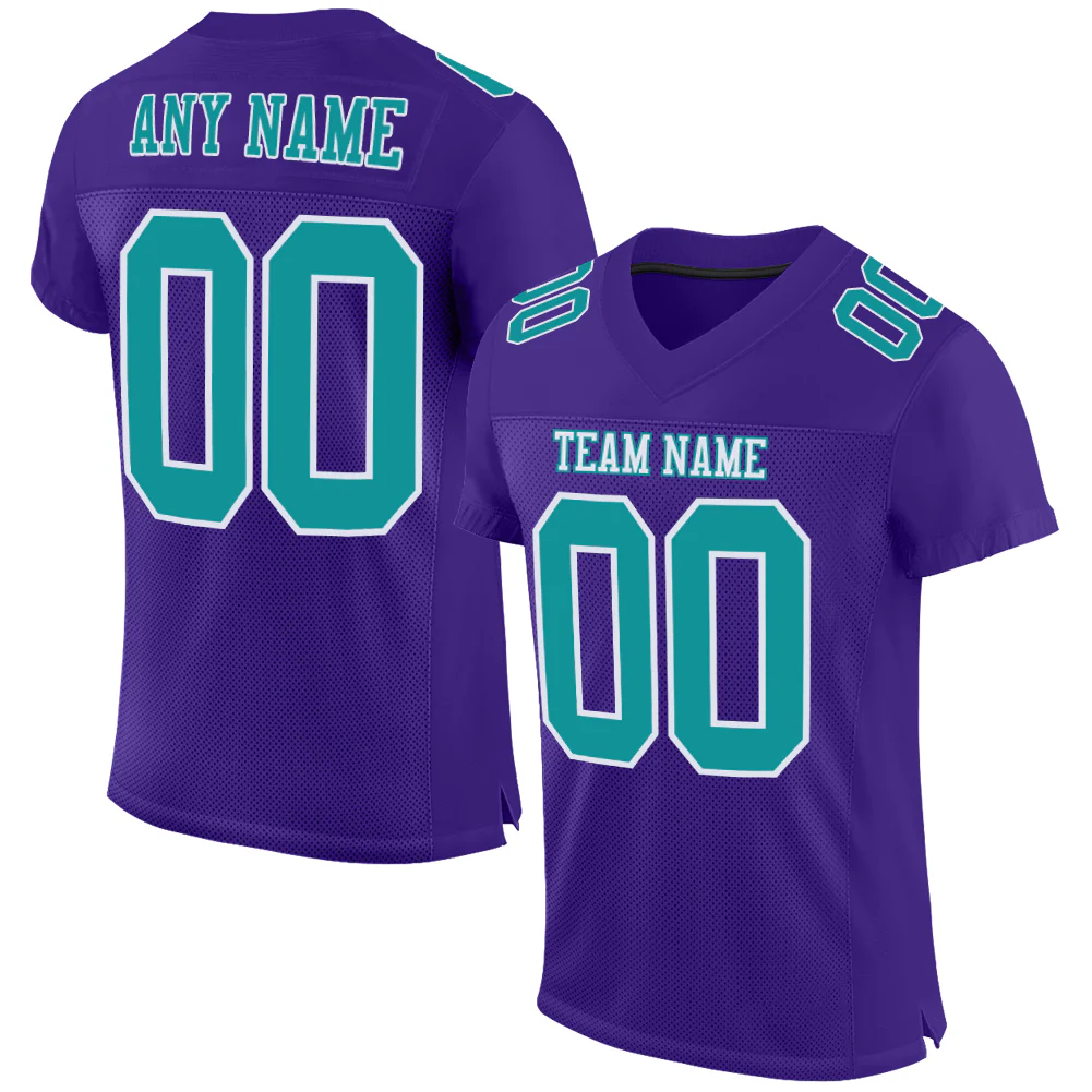Custom Purple Aqua-White Mesh Authentic Football Jersey