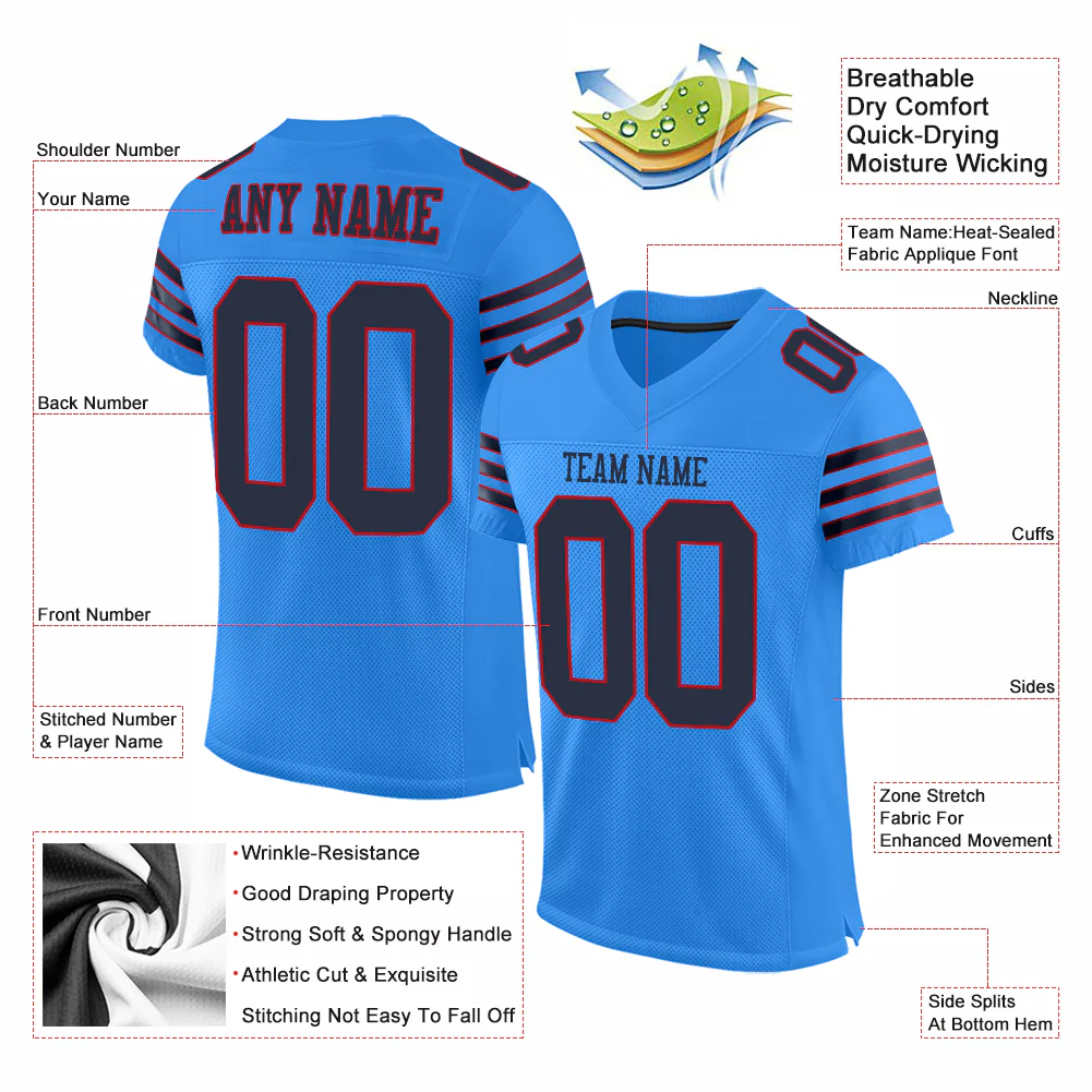 Custom Powder Blue Navy-Red Mesh Authentic Football Jersey