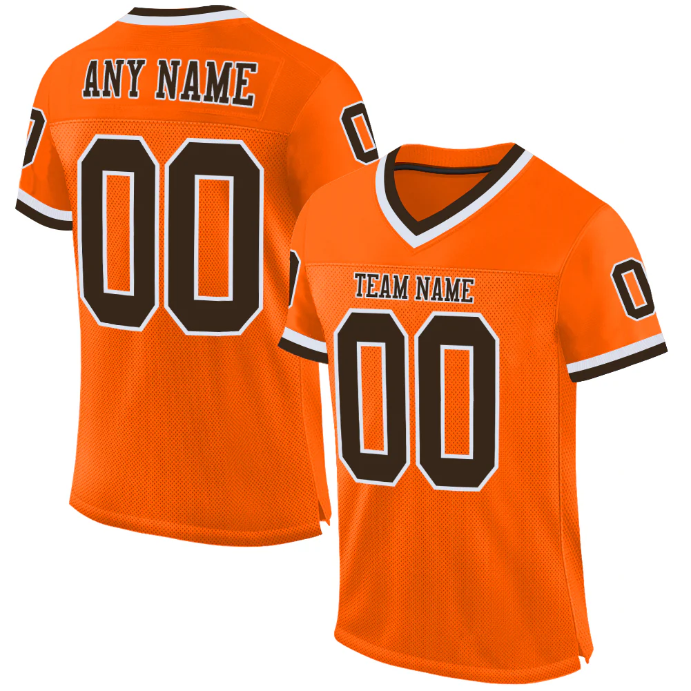 Custom Orange Brown-White Mesh Authentic Throwback Football Jersey