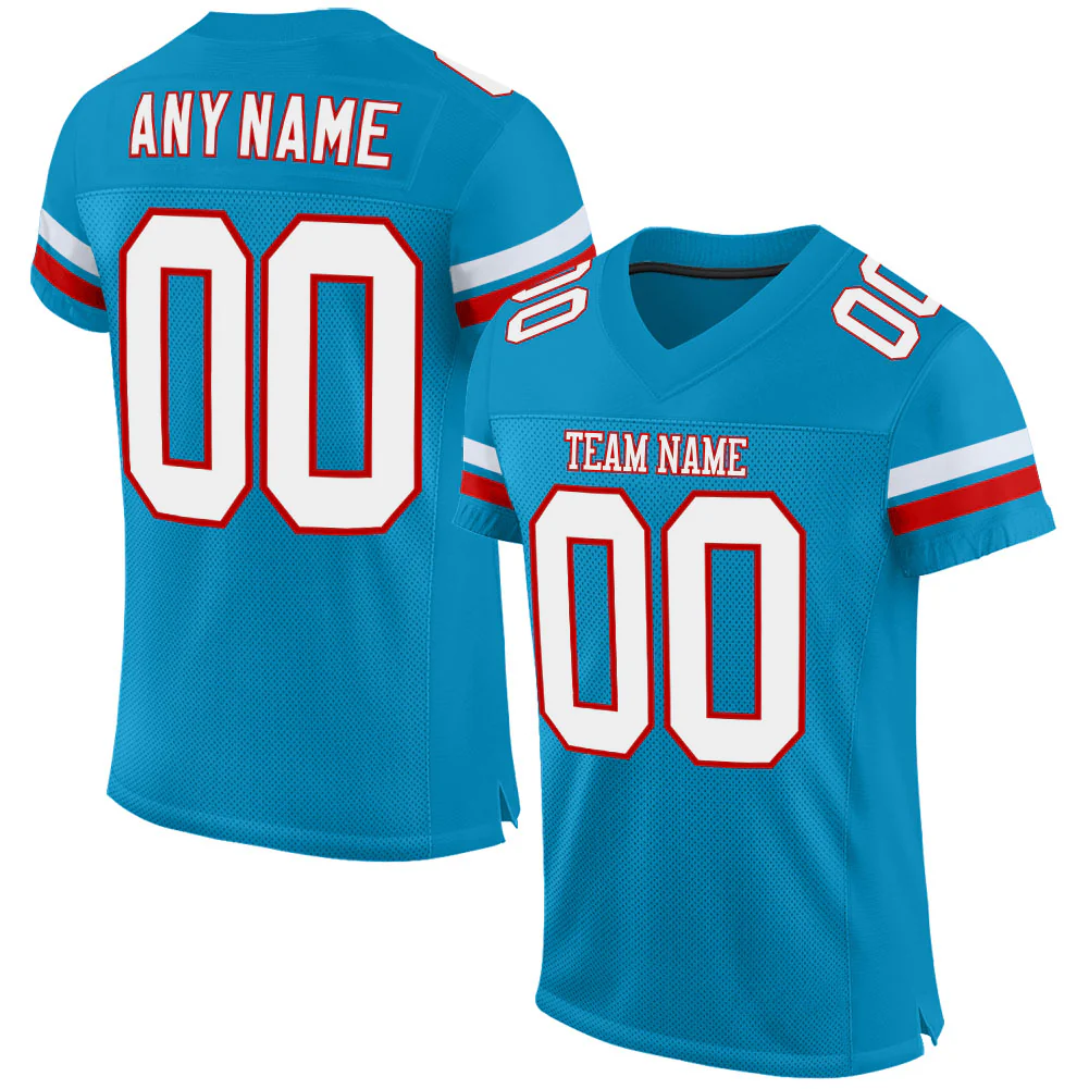 Custom Panther Blue White-Red Mesh Authentic Football Jersey